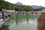 Bootshäuser in Königssee in Berchtesgadener Land. Aufnahme: Juli 2008.