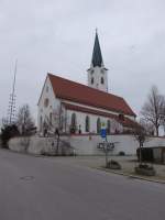 Grüntegernbach, St. Nikolaus Kirche, spätgotische basilikale Anlage mit Polygonalchor, Chor erbaut 1428, Langhaus von 1441, 1875 regotisiert (29.02.2016)