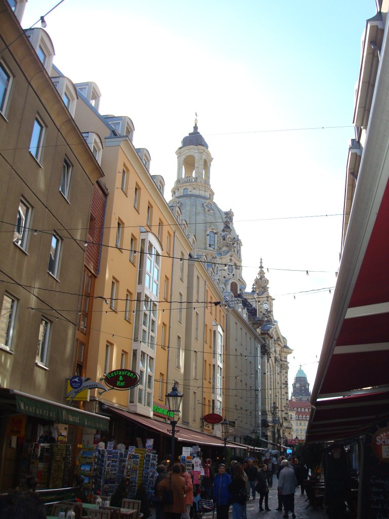 Dresden, Blick von der Augustusbrücke elbabwärts auf die Marienbrücke, linksseitig hinter den Bäumen der neue Sächsische Landtag und der Erlweinspeicher (rotes Dach), ein 1913-14 in Eisenbeton-Skelettbauweise errichtetes Lagerhaus, seit 2006 Hotel, Okt.2009 rainer ullrich