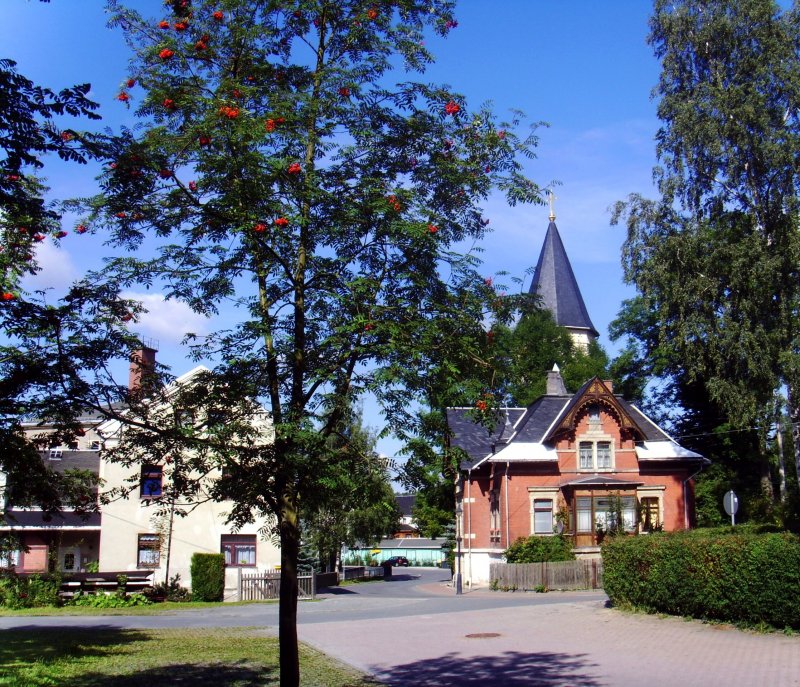 Blick auf die evangelische Kirche Erlbach, August 2007.