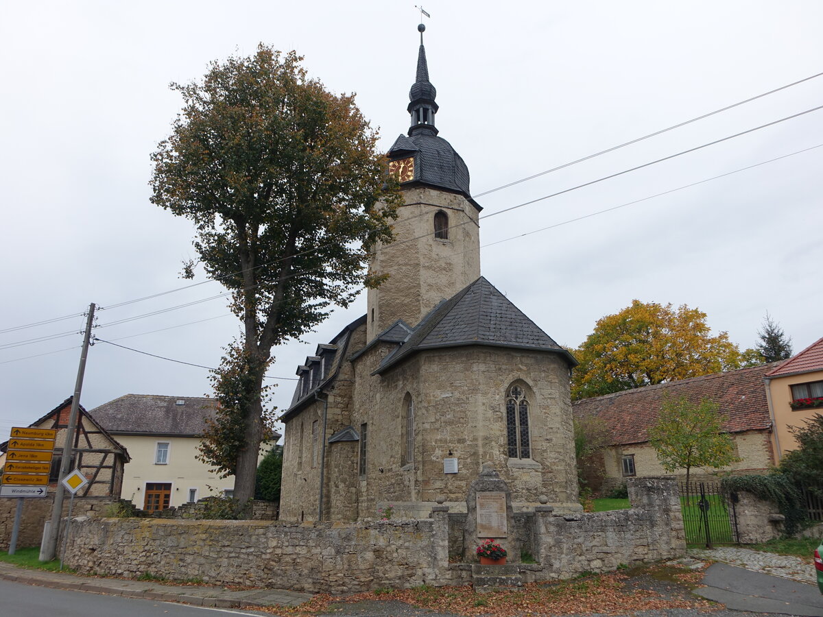 Isserstedt, evangelische St. Magdalena Kirche, spätgotische Chorturmkirche, erbaut im 13. Jahrhundert (21.10.2022)