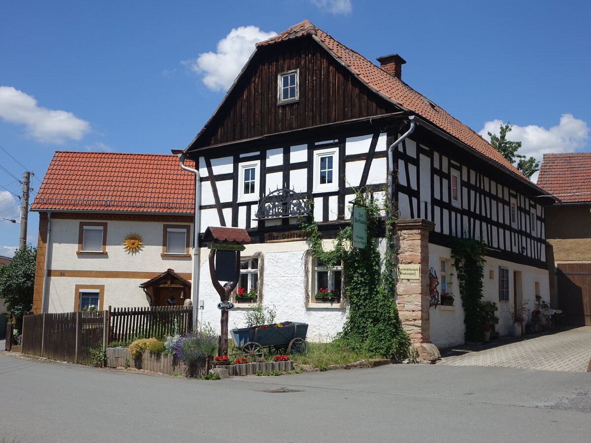 Endschütz, Fachwerkhaus an der Dorfstraße, heute Dorfladen (25.06.2023)