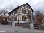 Herges-Hallenberg, evangelische Kirche, schlichte verputzte Fachwerkkirche, erbaut von 1706 bis 1722 (15.04.2022)