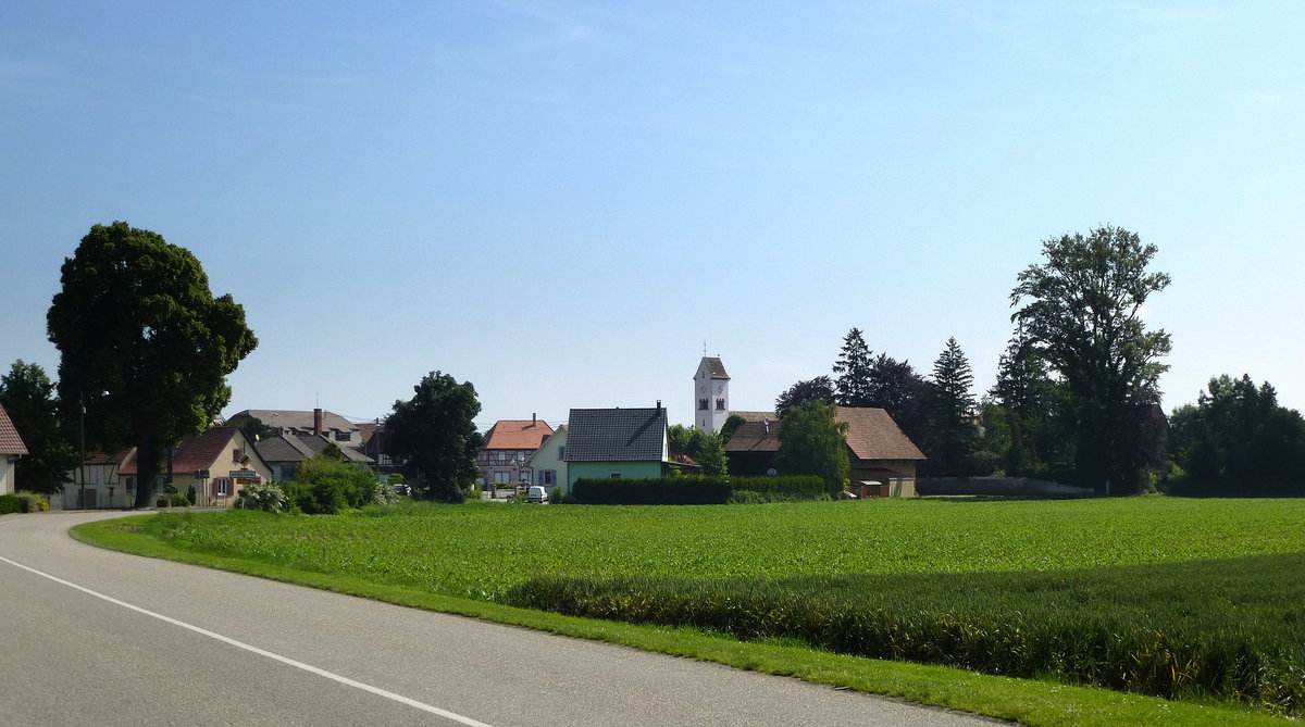 Richtolsheim im Unterelsaß, die Kirche St.Arbogast, Juni 2016