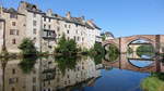 Espalion, Brücke aus dem 13. Jahrhundert und alte Häuser am Flußufer (31.07.2018)