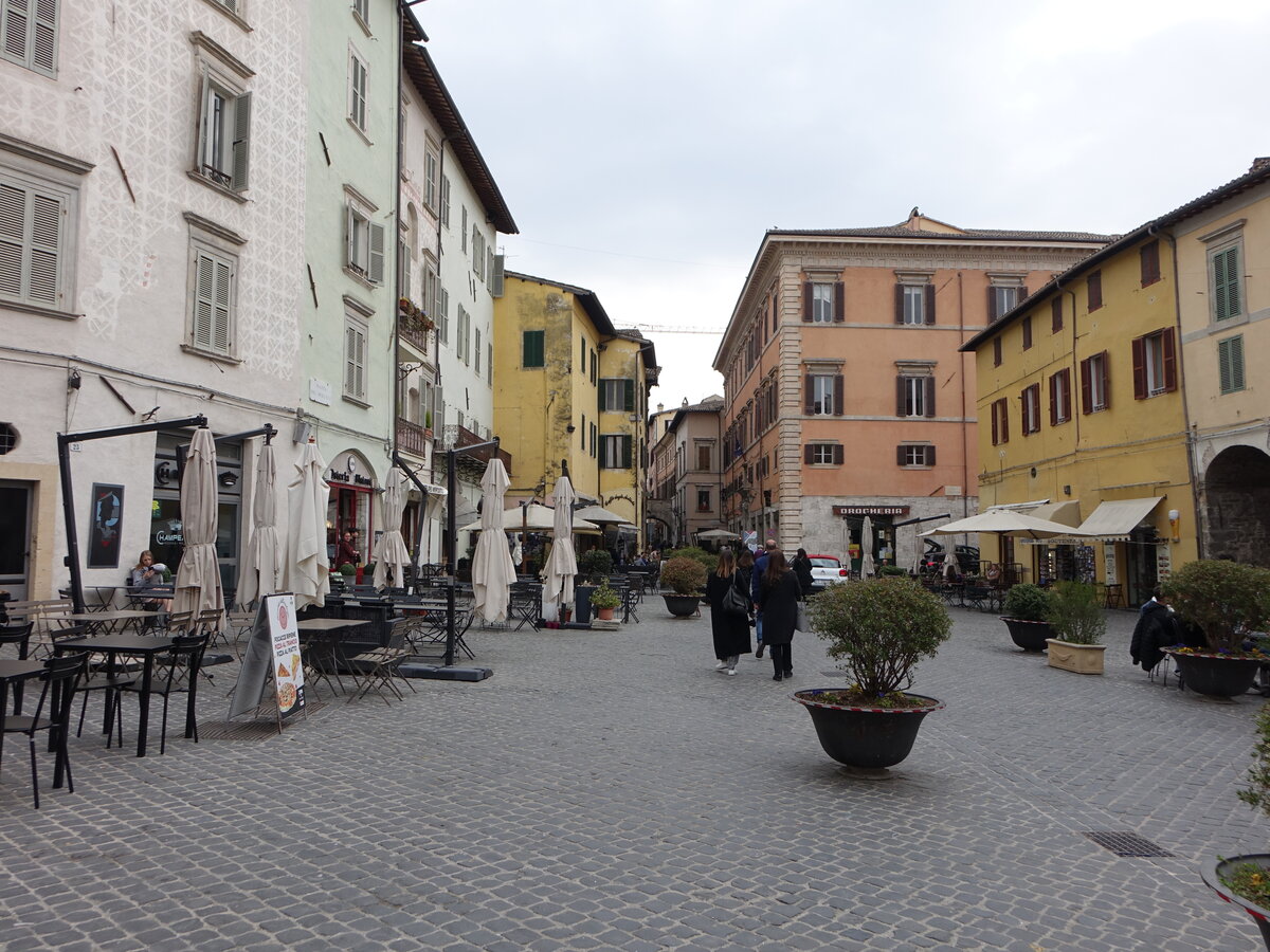 Spoleto, Häuser an der Piazza del Mercato (27.03.2022)