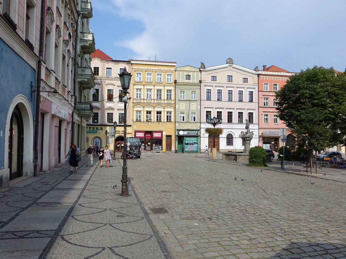 Swidnica / Schweidnitz, Häuser und Neptunbrunnen am Rynek Platz (11.09.2021)