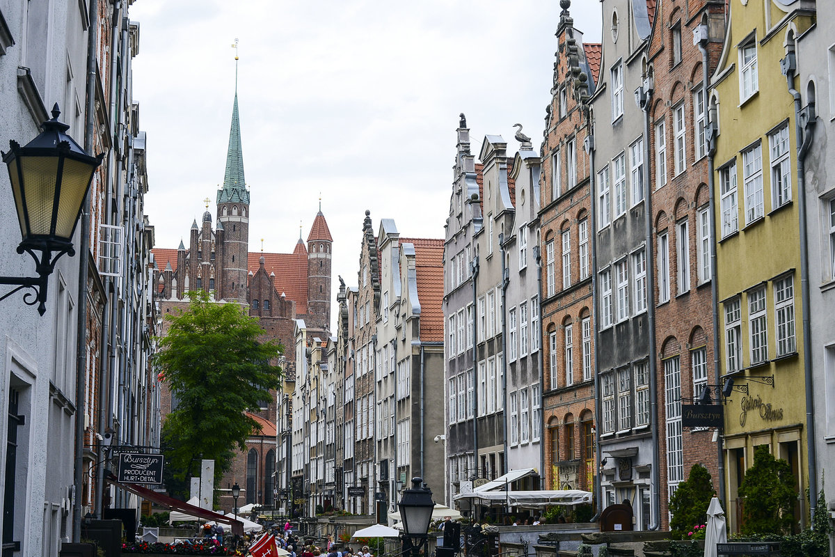 Die St.-Katharinen-Kirche zählt zu den ältesten Kirchen Danzigs. 2006 brach im Dach der Kirche ein Brand aus, der die Dachkonstruktion beschädigte, wodurch Teile des Dachstuhls auf die Zwischendecke des Kirchenschiffes stürzten. Aufnahme: 12. August 2019.