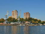 Blick zur Chabarovsker Brücke, diese überquert sieben Kilometer nördlich des Stadtzentrums von Chabarowsk den Fluss Amur.