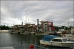 Ein Stockholmer Wohngebiet auf der Insel Stora Essingen im Mälarsee. In Stockholm ist es meist nicht weit bis zu einem Gewässer. Die Insel ist seit dem Jahr 2000 mit der Tvärbahn auch an den Stockholmer Schienennahverkehr angebunden. Das Bild wurde von der eigenes für diese Stadtbahn gebauten Alvikbrücke aufgenommen. 20.8.2007 Gisela, Matthias und Jonas Frey