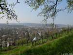 Hier die Stadt Winterthur vom Aussichtspunkt ''Bäumli'', zu sehen im Vordergrund die Altstadt, links Töss, rechts Wülflingen. Die 3 herausragenden Hochhäuser sind links (grau) der WinTower, ex. Sulzer Hochhaus, Mitte (rot) AXA-Tower und rechts (grau) das Bettenhaus des Kantonsspitals Winterthur. Silvio Jenny