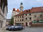 Prachatice, Hauptplatz Velke Namesti mit neuem Rathaus (25.05.2019)