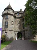 Falkland Palace, das Jagdschloss der Stuarts enstand von 1460 bis 1488 unter König James III., Torhaus mit Rundtürmen (09.07.2015)