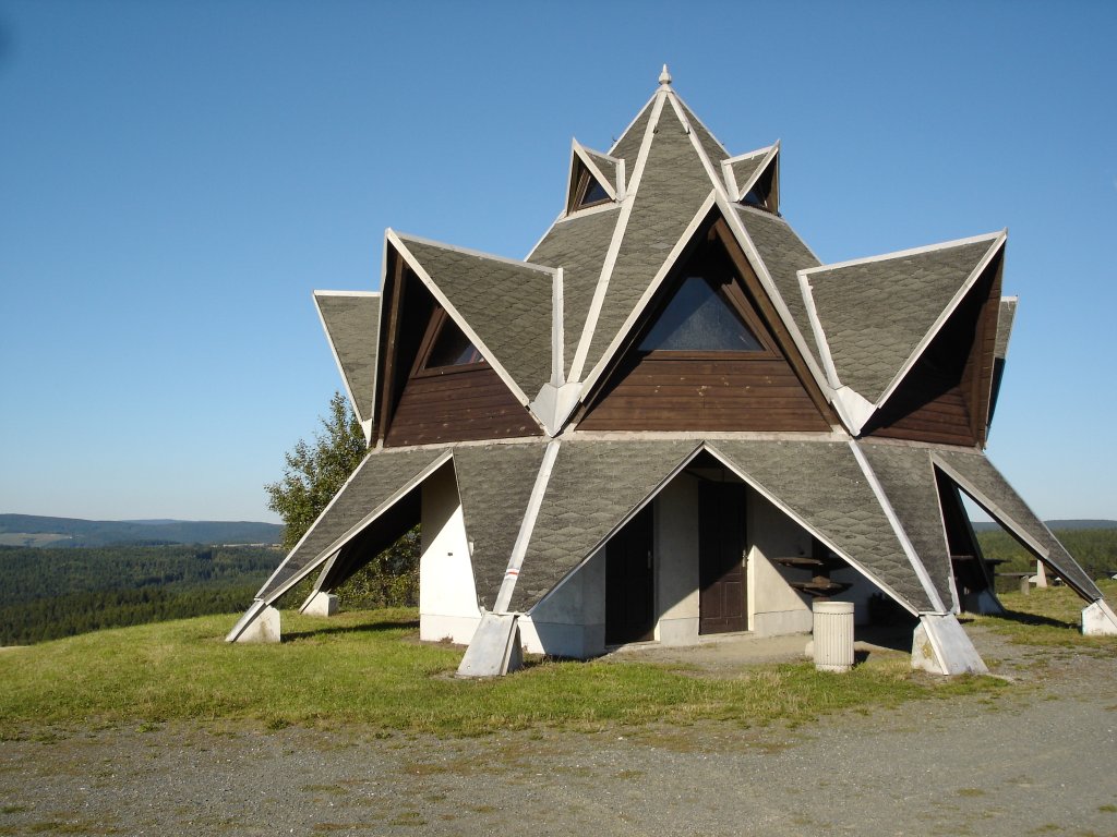 Landwüst/Vogtland, Aussichtsturm und Schutzhütte auf dem 664m hohen Wirtsberg, auch "Zitronenpresse" genannt, Mai 2005
