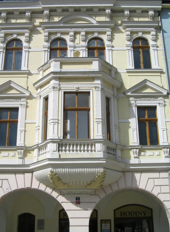 Detailreiche Fassaden findet man auf dem Marktplatz von Chomutov, 18.06.07