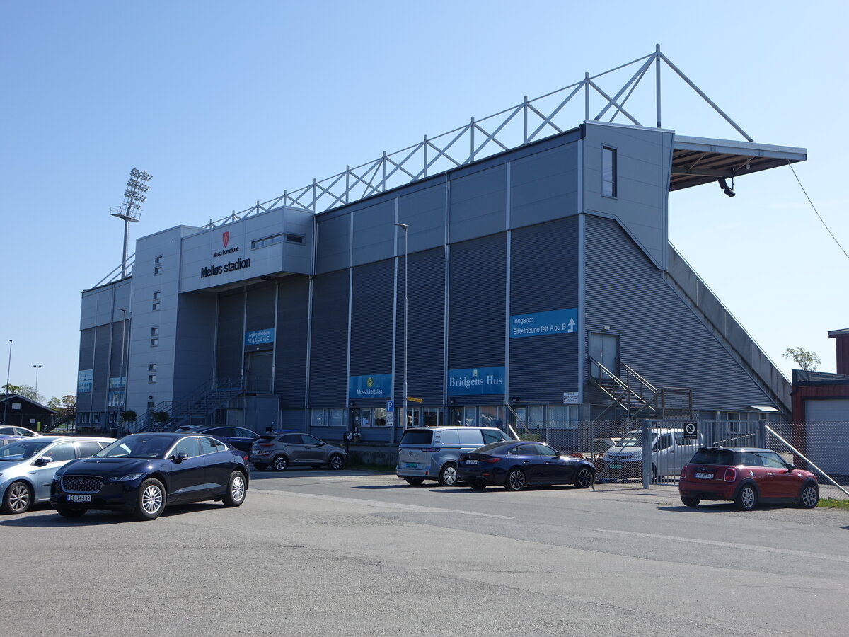 Moss, Haupttribüne des Melløs Stadion, erbaut ab 1939 (21.05.2023)
