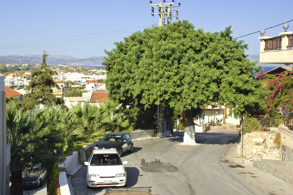 Ein Baum mitten in der Straße. Platanias - Kreta. Aufnahme: 22. Oktober 2016.