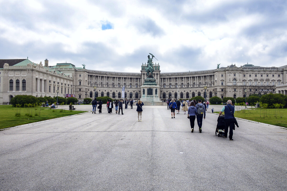 WIEN von oben, bzw. von der 56mtr. hohen Terrasse des ehem. Feuerleitturmes (nun Haus des Meeres) über die Dächer der Maria-Hilf Kirche, ehem. Geschützturm,bis zur im Hintergrund die goldene Kugel vom Heizwerk Spittelau; 230203