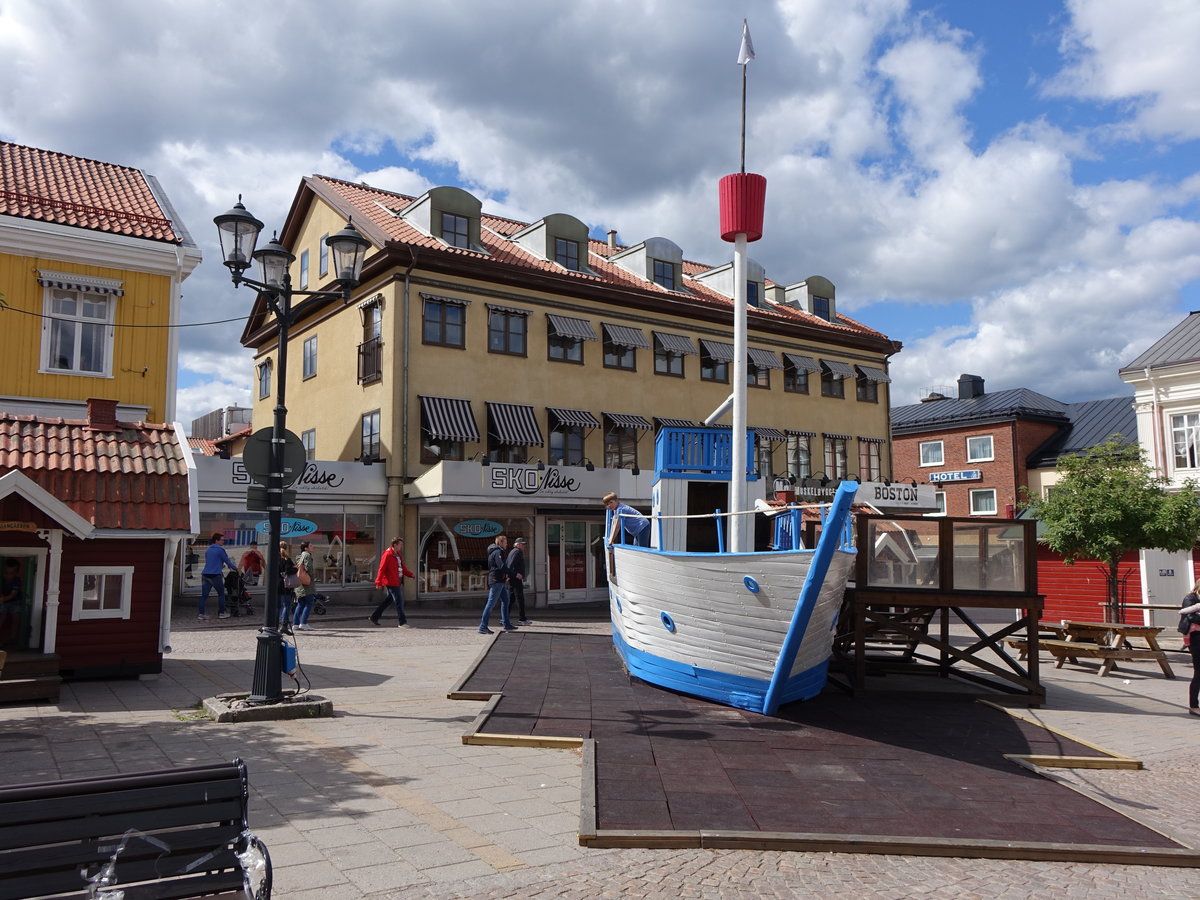 »Wir Kinder aus Bullerbü« ist eine Kinderbuchreihe der schwedischen Autorin Astrid Lindgren, die das idyllische Leben auf dem Land aus der Sicht eines siebenjährigen Mädchens schildert. Bullerbyn ist dem schwedischen Ort Sevedstorp nachgezeichnet. Auf dem Bild ist ein Ausschnitt der Fassade von Cafe Sörgården im Dorf Sevedstorp zu sehen.