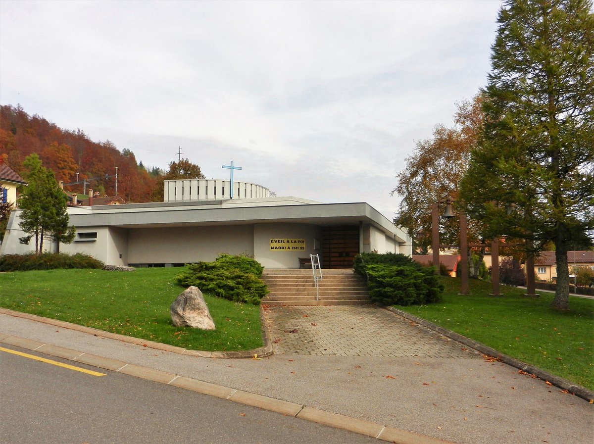 Vallorbe, Rue du Signal, katholische Kirche, 1976 erbaut - 25.10.2013